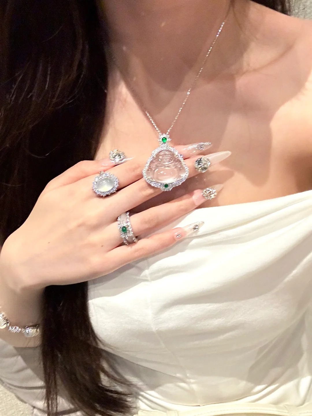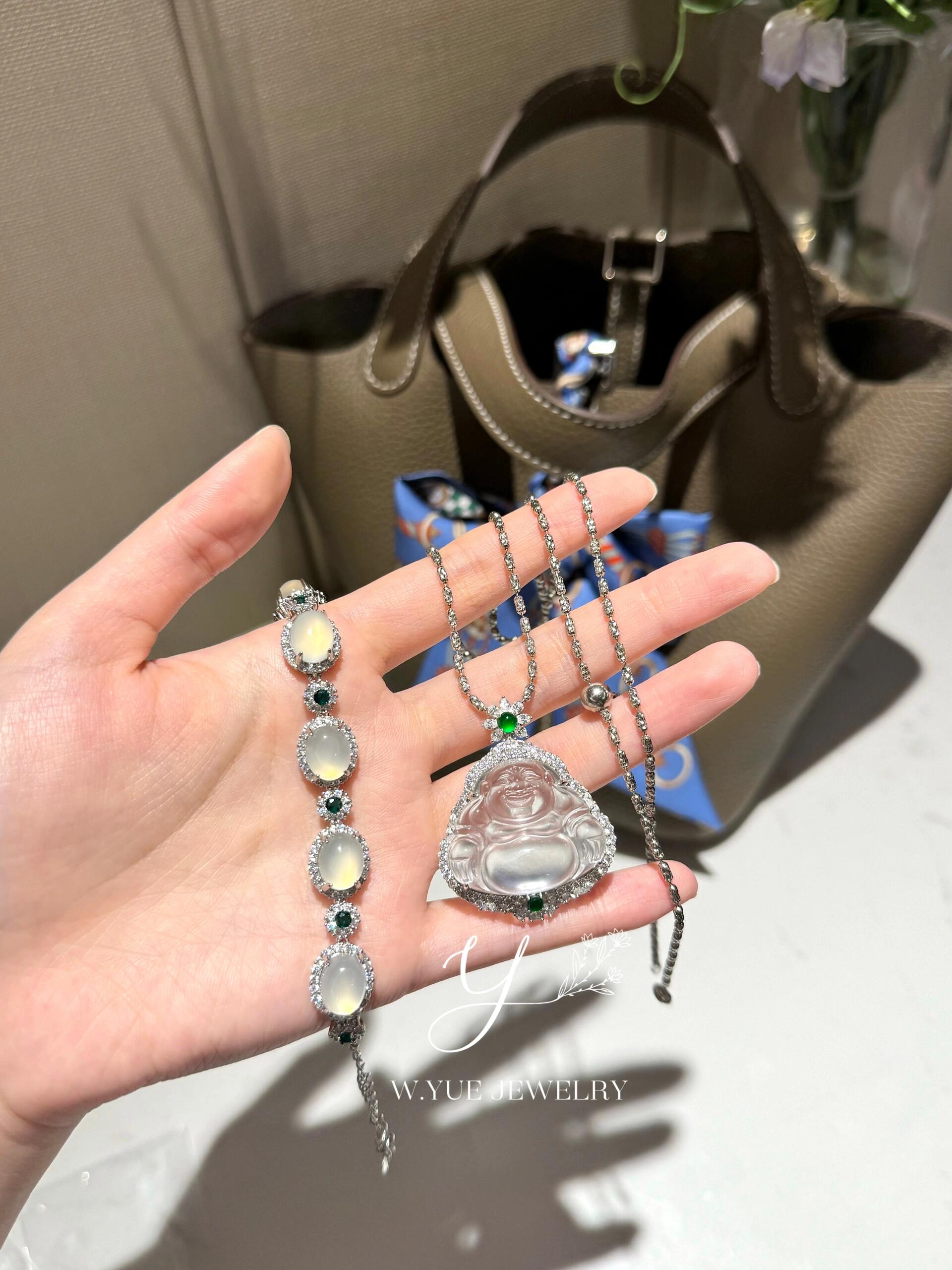 High-grade ice Buddha statue: Transparent like polished jade, the “Buddha light effect” can be seen under the light (recommended: blue mist flowers / clear water background)
