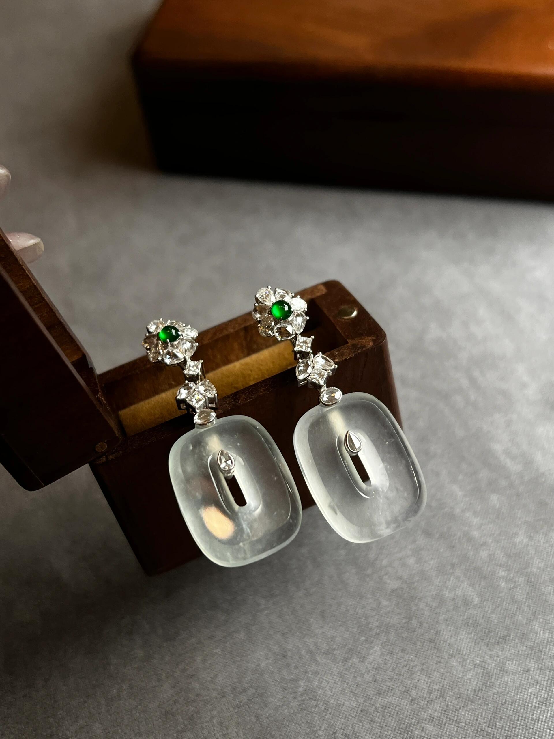 Geometric line aesthetics: Clean rectangular cut, a perfect blend of modernity and classical jade culture. Ice-quality jadeite main stone: Transparent like ice, emitting a faint glow under the light.