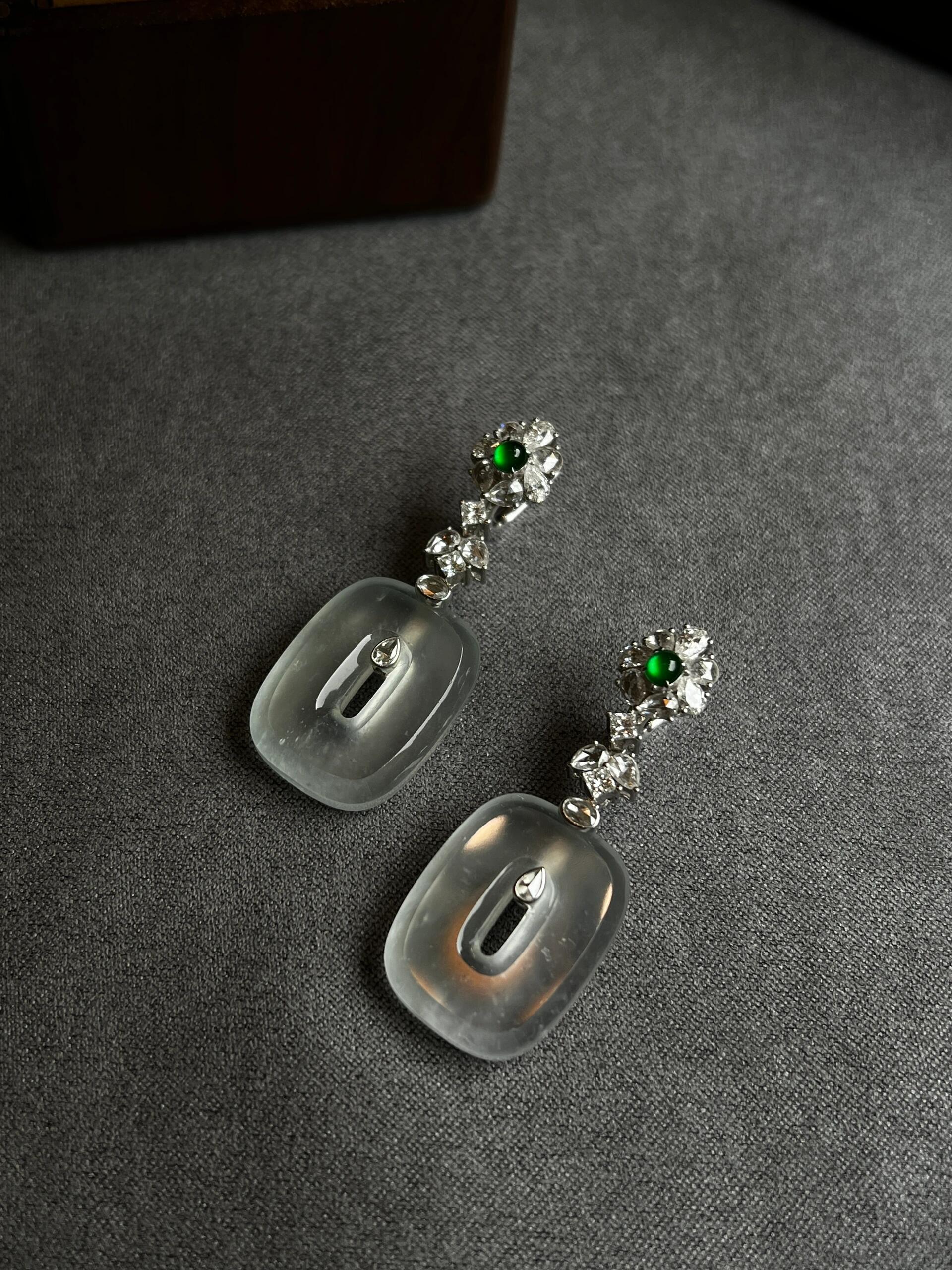 Rectangular ice-quality jadeite stud earrings – Urban modern Eastern poetic charm